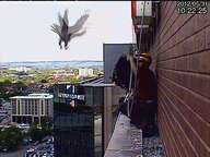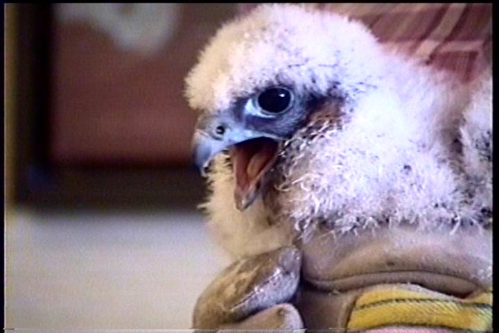 The three chicks are collected from their nest, atop an 18th floor window ledge on the Sheraton Hamilton Hotel, vigorously guarded by the adults.....