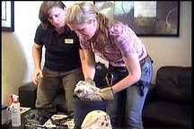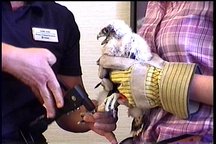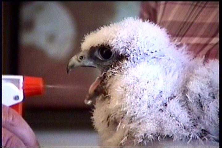 Felker gets a drink, and his throat is checked. All the chicks were free of infection.
